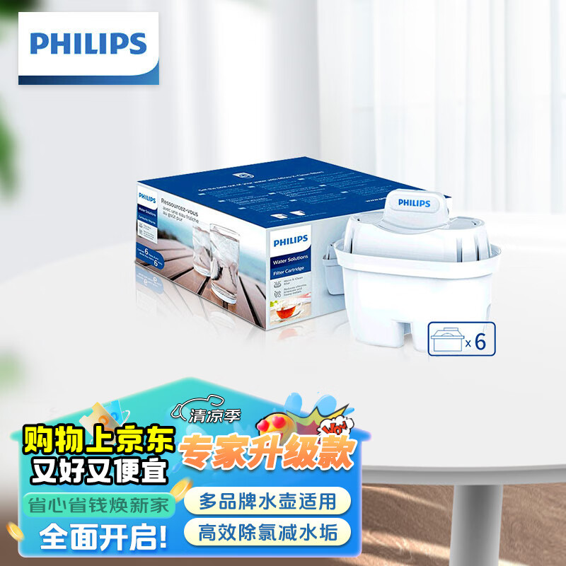 飞利浦(PHILIPS)家用净水壶滤芯 滤水壶净水器去除水垢专家版滤芯AWP210 6枚装价格:129.00元!