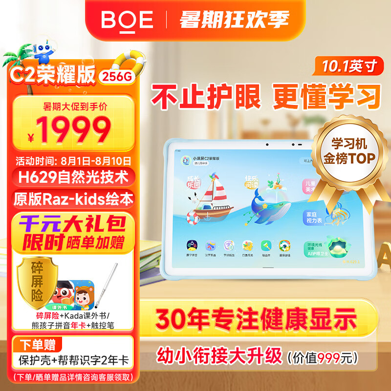 BOE京东方小课屏C2-256G荣耀版10.1英寸学生学习平板类纸护眼儿童AI学习机小初高中同步早教家教机RAZ价格:1999.00元!