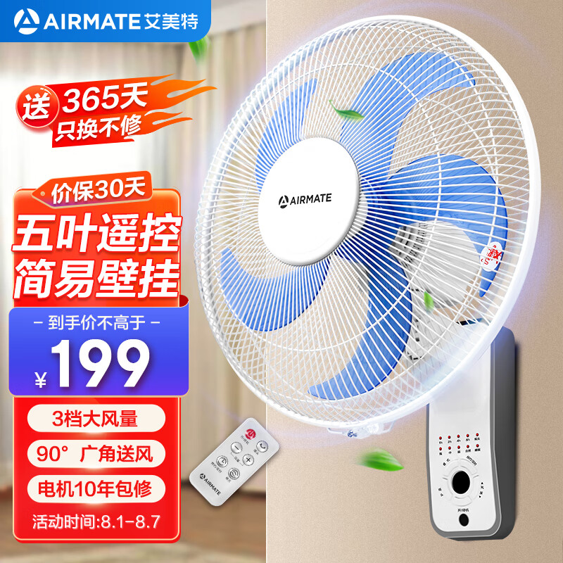 艾美特(AIRMATE)商用电风扇壁扇壁挂式左右摇头工业工程风扇大风量餐厅宿舍食堂风扇五叶遥控墙壁风扇 FW4035R价格:189.00元!