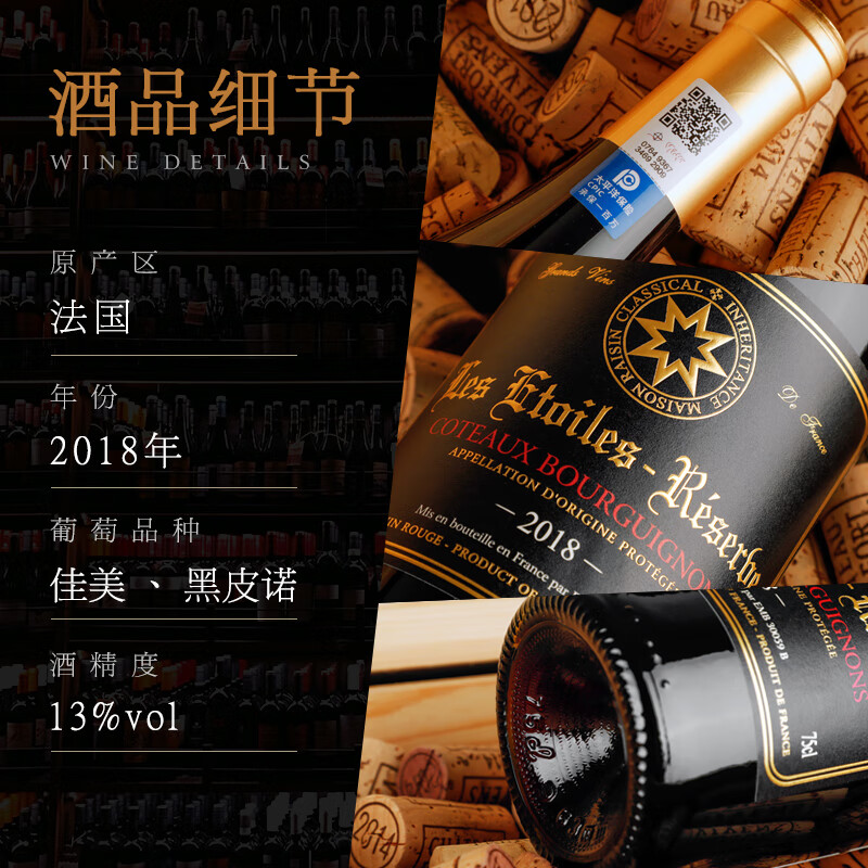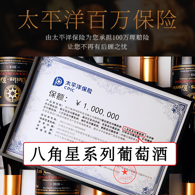 八角星法国原瓶进口AOC红酒年货送礼整箱 干红葡萄酒750ml*6瓶礼盒装价格:478.00元!