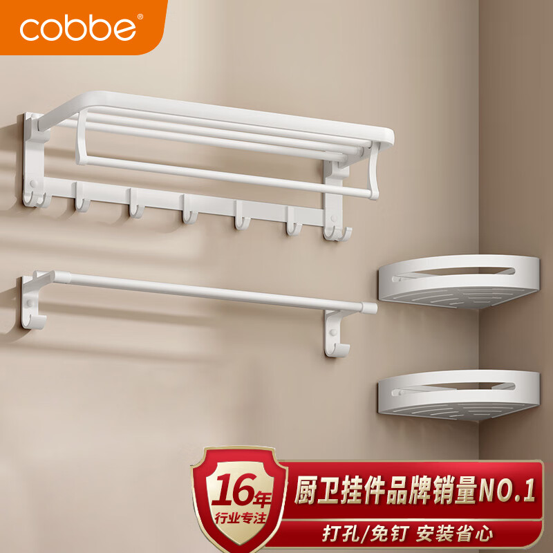 卡贝(cobbe)太空铝毛巾架浴室壁挂免打孔卫生间置物架洗手间浴巾架五金挂件价格:208.00元!