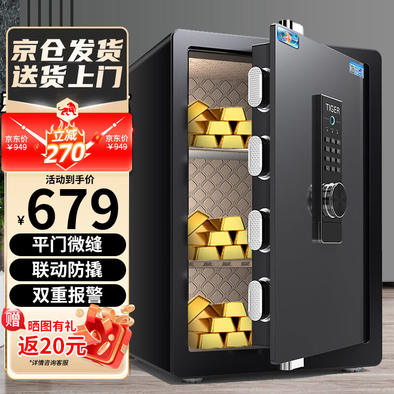 虎牌保险柜家用办公小型保险箱指纹密码全钢防盗可入墙保密保管柜博越系列60cm黑色价格:779.00元!