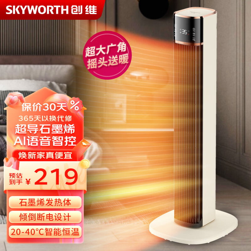 创维(Skyworth)石墨烯速热取暖器 智能家用语音遥控暖风机 办公室大广角摇头送暖热风机节能即热神器电暖器A818价格:219.00元!