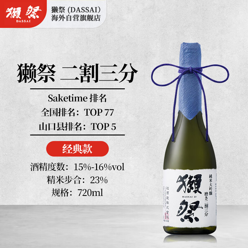 獭祭(Dassai)23二割三分 日本清酒 720mL 纯米大吟酿价格:419.00元!