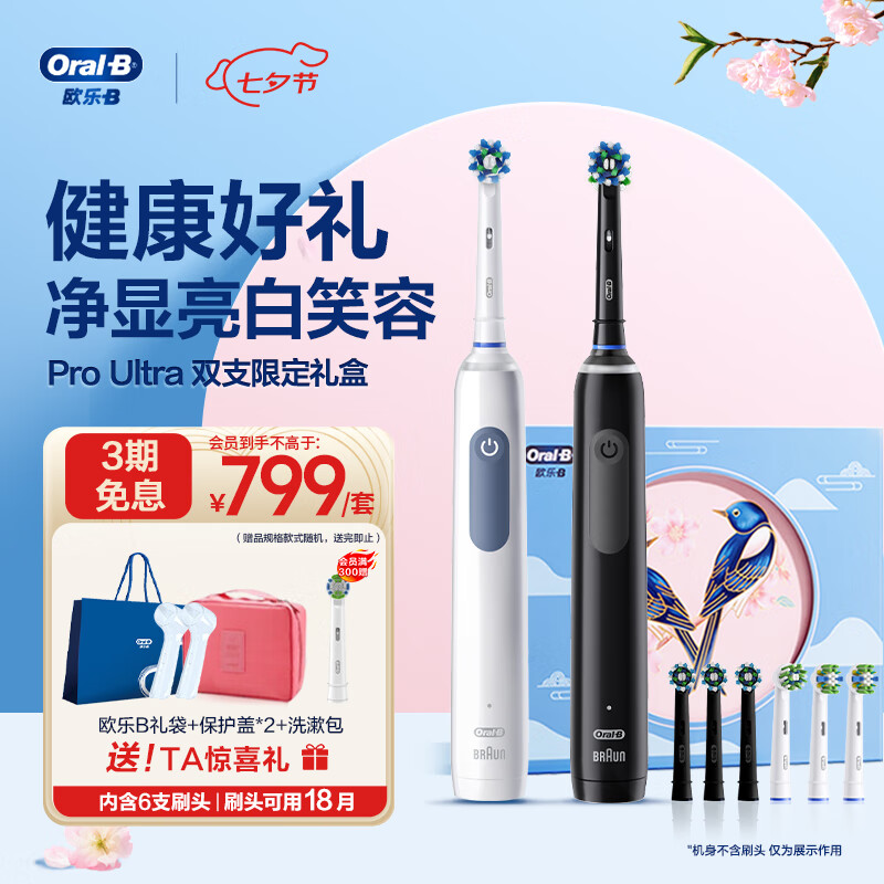 欧乐B成人电动牙刷Pro4Ultra双支甄选礼盒Pro系列3D声波圆头深度清洁牙龈按摩送男友女友七夕情人节礼物价格:958.00元!