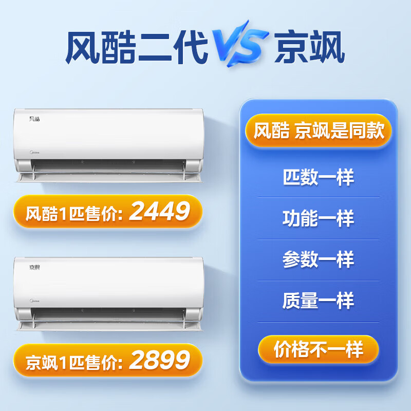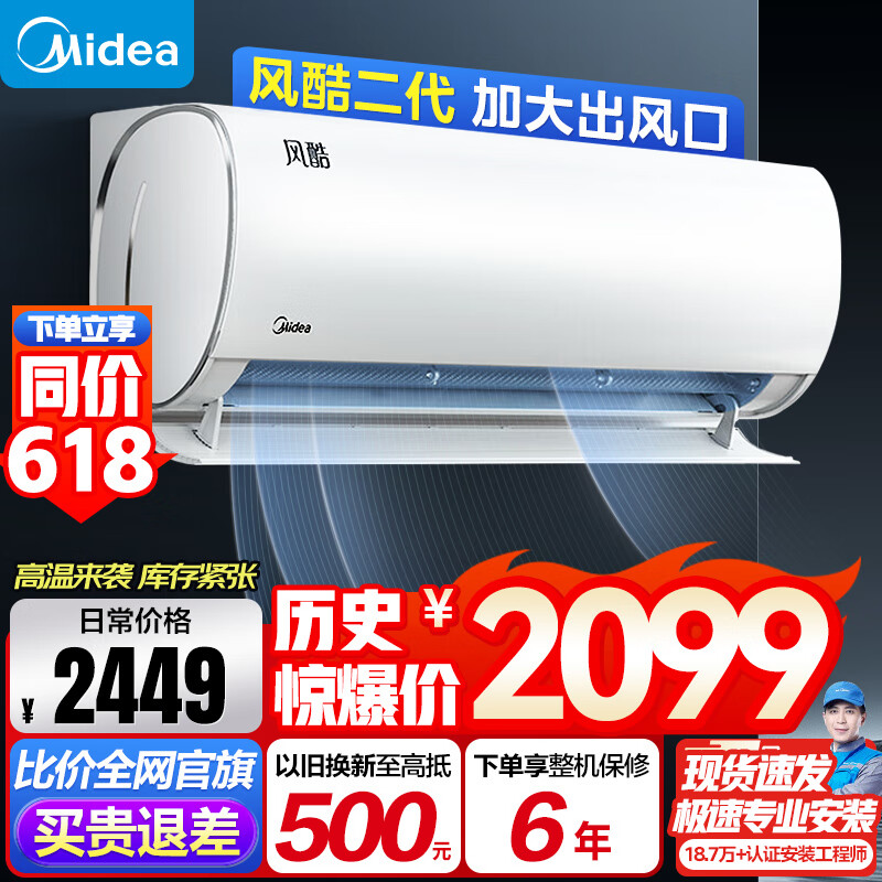 美的(Midea)大1匹新一级能效空调风酷二代京飒同款变频冷暖自清洁家用壁挂式卧室挂机空调智能家电26XHC1Ⅱ价格:2099.00元!