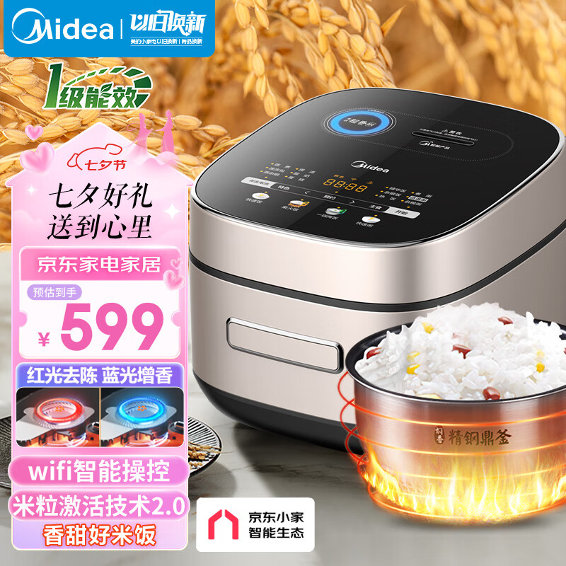美的(Midea)风动稻香系列2代IH京东小家智能生态电饭煲Pro电饭锅家用4L彩屏WIFI智控蒸米饭锅HS407(3-8人)价格:699.00元!