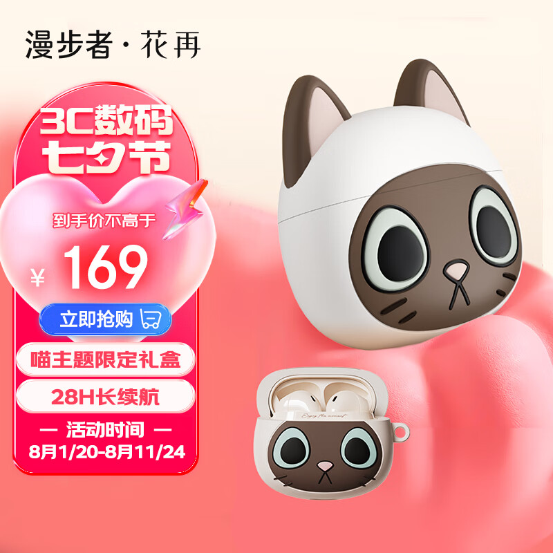 漫步者花再Zero 喵系列限定主题礼盒 真无线蓝牙耳机 半入耳式耳机 无线耳机 节日尊享定制礼盒 暹罗喵价格:199.00元!