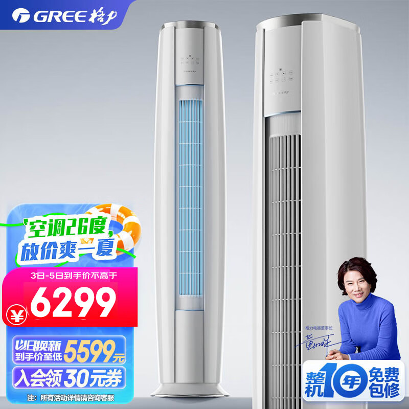格力(GREE)空调 京东小家智能生态 2匹 云锦-Ⅱ新1级能效 客厅空调立式空调柜机 格力空调KFR-50LW/NhAg1BAj价格:6299.00元!