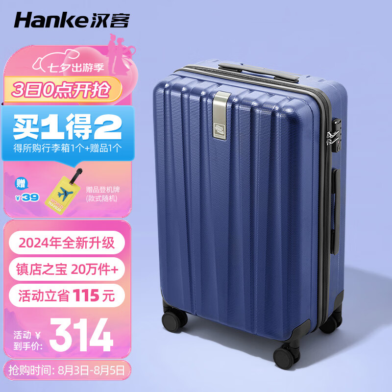 汉客行李箱男拉杆箱女登机旅行箱20英寸黛蓝色密码箱镇店之宝再次升级价格:429.00元!