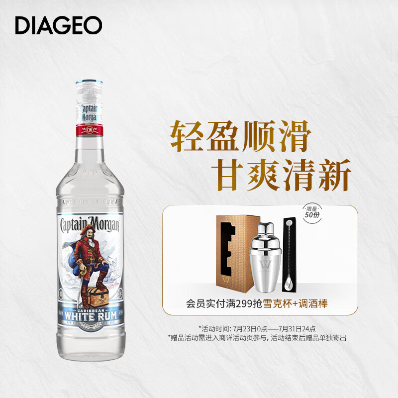 摩根船长(Captain Morgan)朗姆酒 mojito莫吉托调酒基酒 摩根白 洋酒 700ml价格:68.00元!