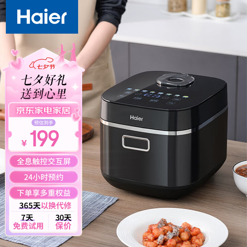 海尔(Haier)电饭煲电饭锅4L晶钻厚釜内胆全息触控屏3-8人七段加热多功能家用智能电饭煲焖香阀防溢锅JC2S4020价格:239.00元!
