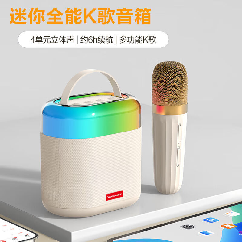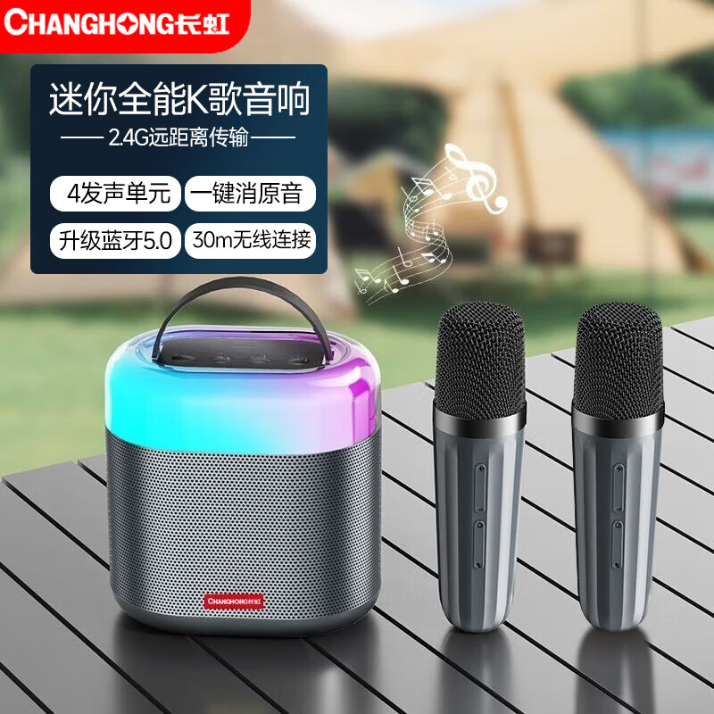 长虹K6麦克风音响一体家用KTV全套设备无线蓝牙儿童k歌娱乐卡拉OK专业音箱电脑户外手机电视带声卡 灰色 双麦价格:156.40元!