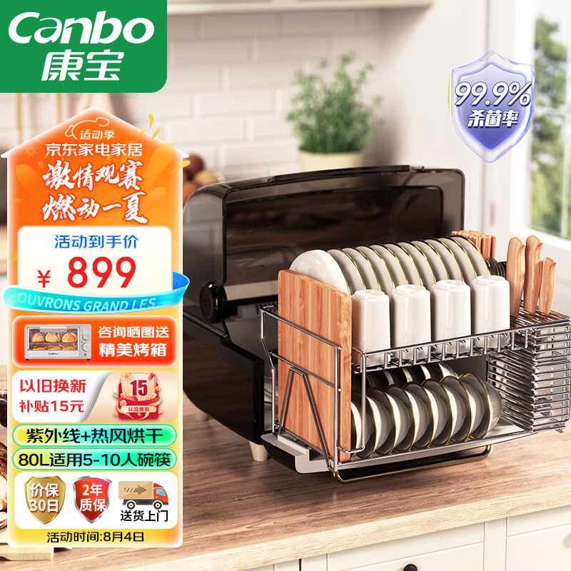 康宝(Canbo)消毒柜家用立台式 婴儿奶瓶碗筷茶具刀具砧板消毒碗柜 紫外线烘干免沥水厨房小型收纳柜 ZTD80-K2Z价格:899.00元!