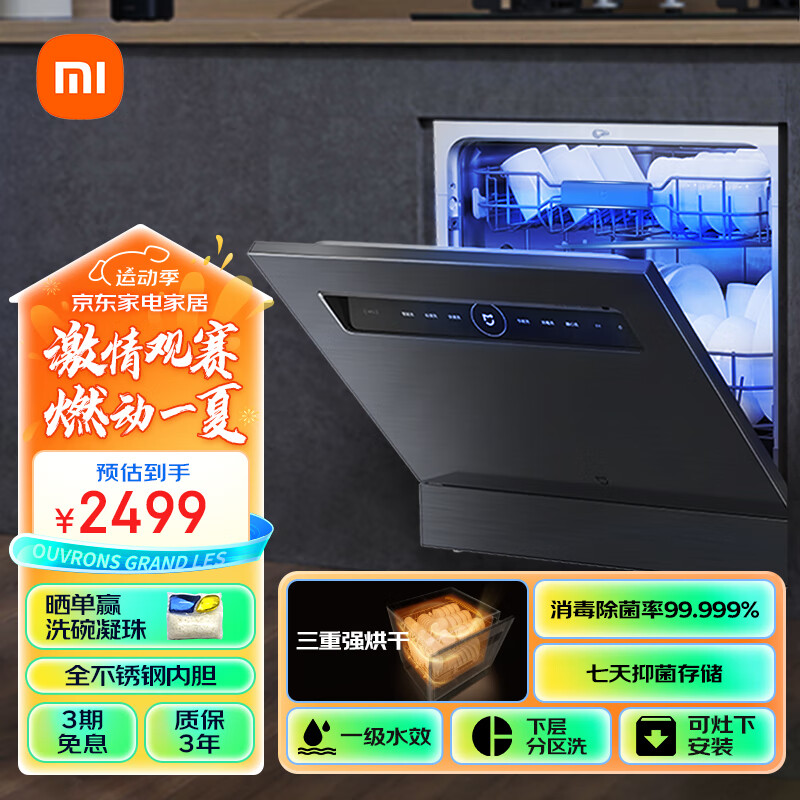 米家 小米洗碗机12套大容量洗碗机热风烘干灶下嵌入式洗消烘存一体双驱变频7天储存WQP12-01价格:2499.00元!