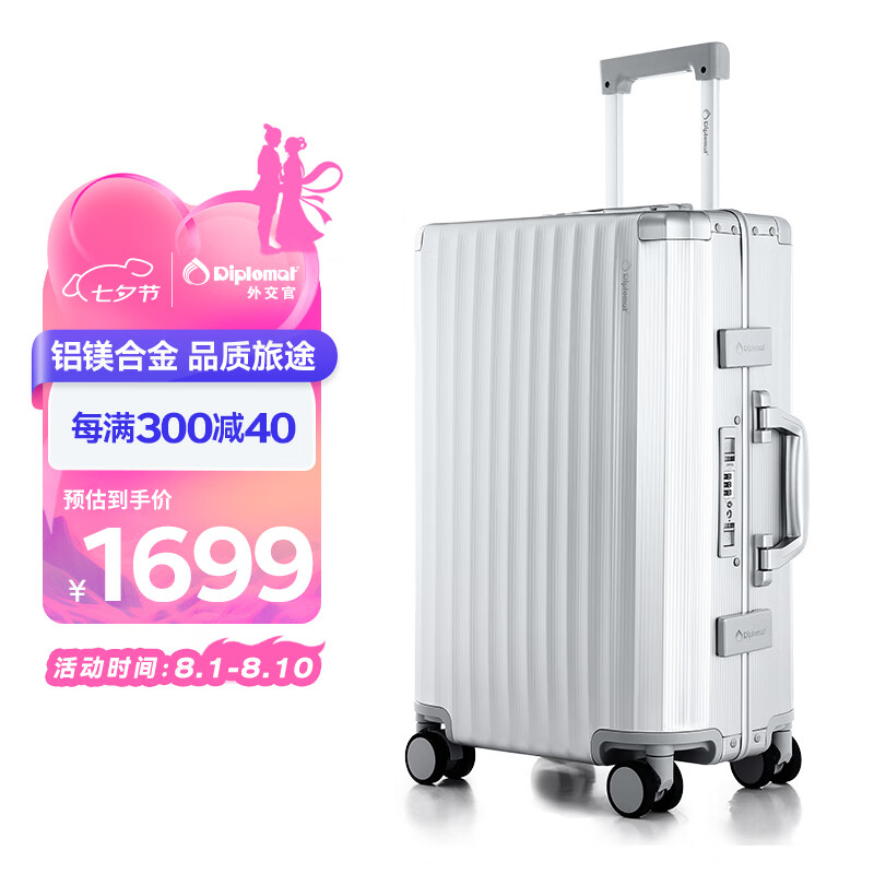 Diplomat外交官行李箱大容量镁铝合金铝框男女旅行拉杆箱TL-25053银24英寸价格:1939.00元!