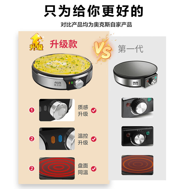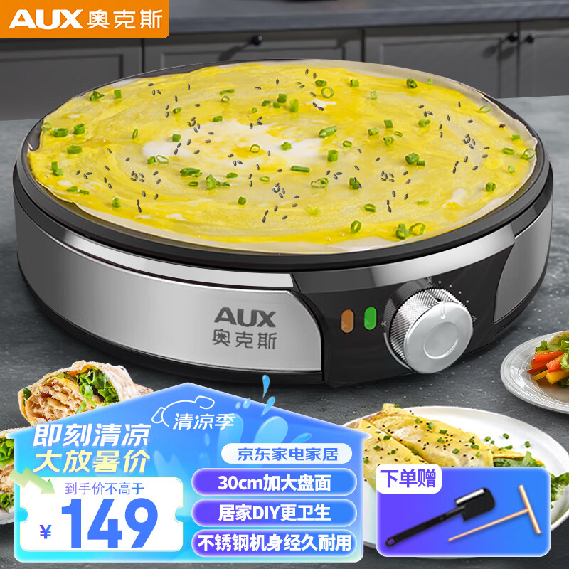 奥克斯(AUX)电饼铛家用煎饼果子机小型杂粮电煎饼锅早餐机山东烙饼不粘煎饼机摆摊鸡蛋饼烤盘LA-102-1价格:149.00元!
