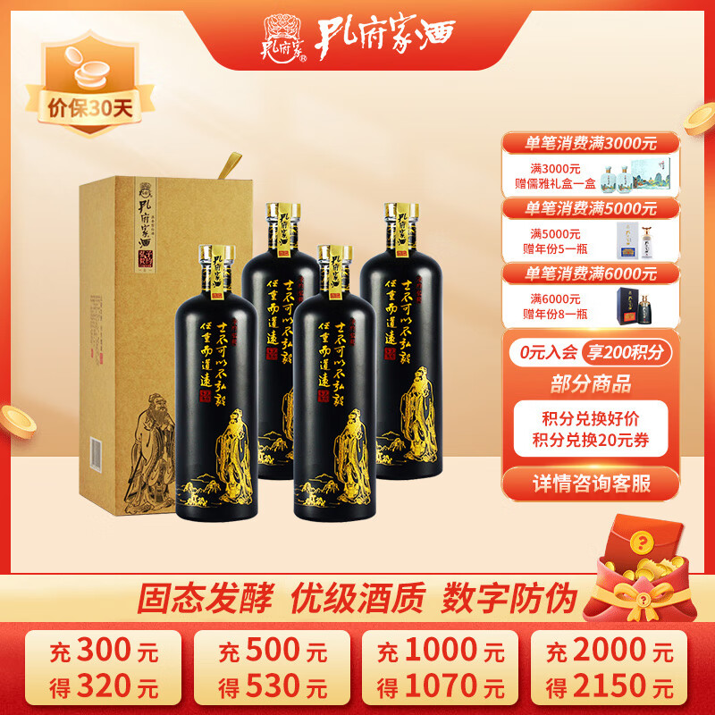 孔府家弘毅8 浓香型白酒 52度 500ml*4瓶 整箱装 山东名酒 中秋送礼价格:399.00元!