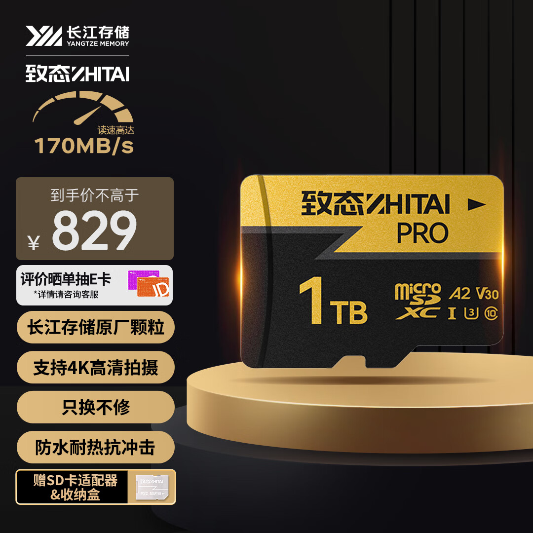 致态(ZhiTai)长江存储 1TB TF(MicroSD)存储卡 U3 V30 A2 PRO专业高速存储卡 读速170MB/s价格:829.00元!