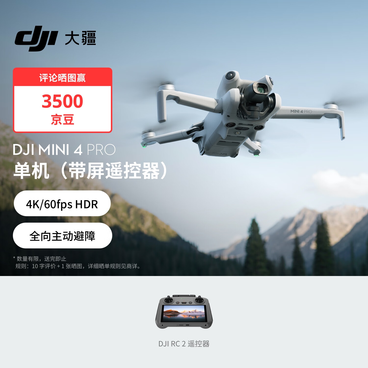 大疆 DJI Mini 4 Pro 单机(带屏遥控器版)全能迷你航拍机 入门级无人机 高清专业航拍无损竖拍价格:5988.00元!
