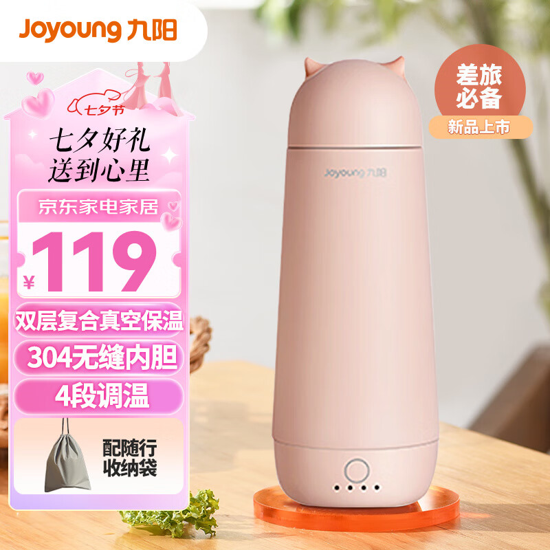 九阳(Joyoung)烧水壶热水壶 便捷式隔热保温电热水壶 四档调温电热水杯 K03-C1(粉)价格:119.00元!