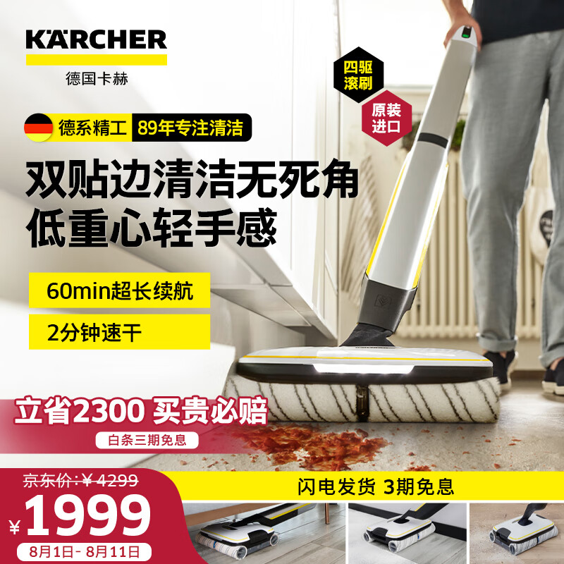 KARCHER德国卡赫 无线智能洗地机 洗扫拖一体机清洁机家用电动拖把 拖擦地 欧洲原装进口FC7价格:1999.00元!