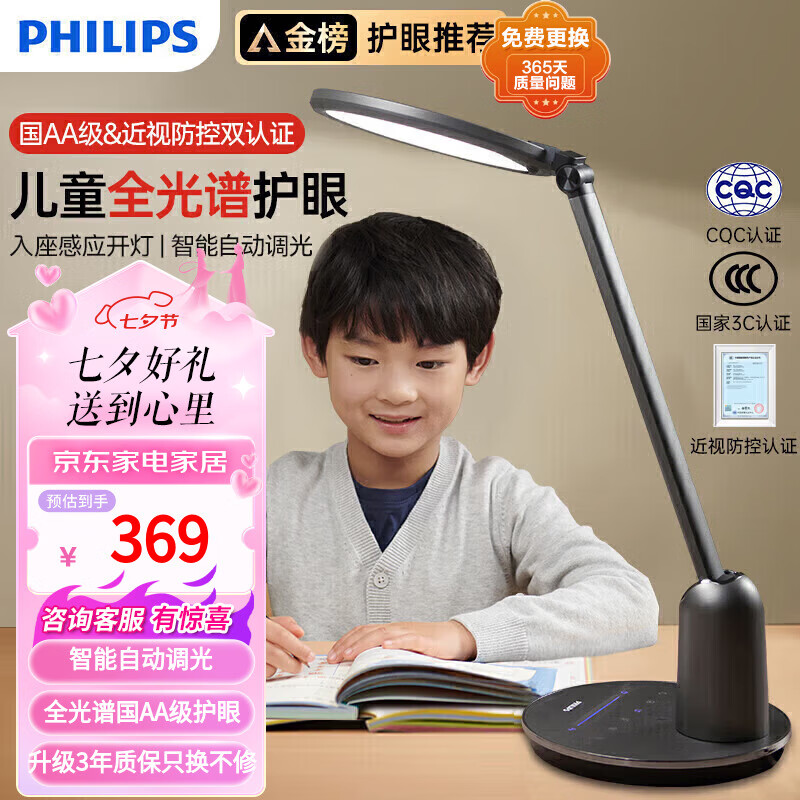 飞利浦(PHILIPS)护眼台灯全光谱儿童学习台灯无蓝光学生阅读卧室灯轩坦灰价格:409.00元!