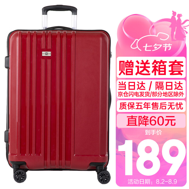 SUISSEWIN拉杆箱24英寸万向轮出差旅行箱男女行李箱密码箱婚礼皮箱红色8810价格:189.00元!