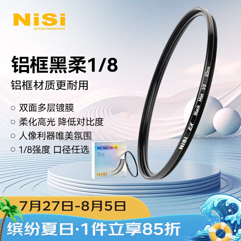耐司(NiSi)1/8黑柔滤镜 67mm ex铝框柔光镜 八分之一柔化镜 柔焦镜 朦胧镜 人像拍摄美颜镜微单相机单反价格:195.00元!