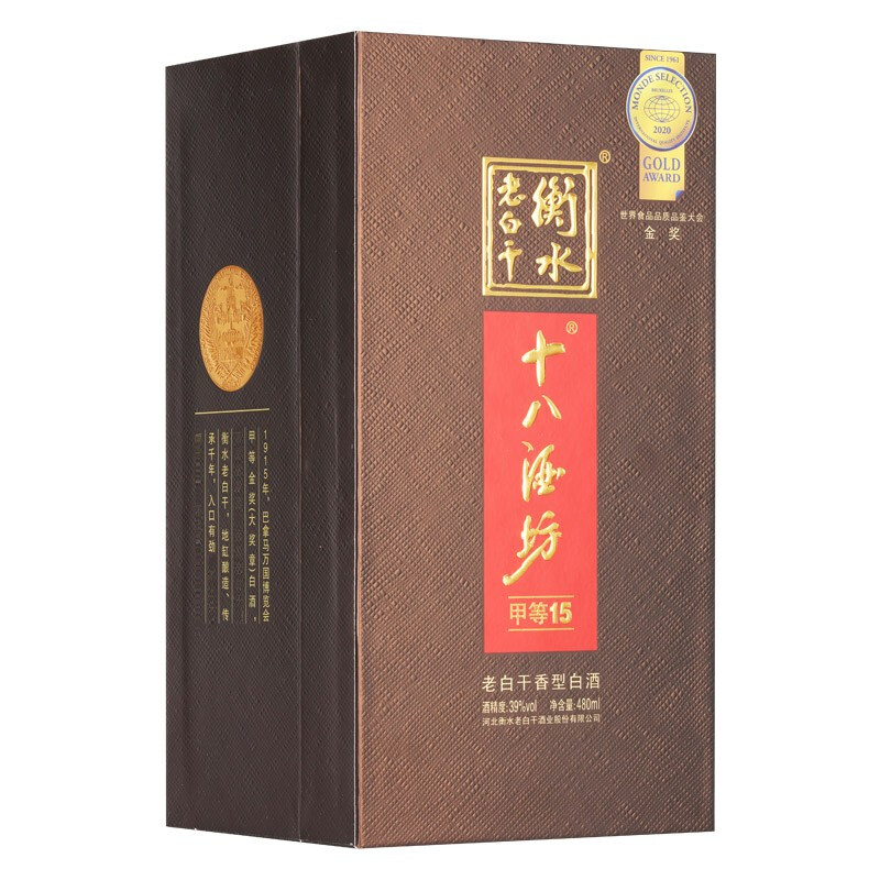 十八酒坊衡水老白干 甲等15 老白干香型白酒 39度480ml单瓶 送礼礼盒价格:379.00元!