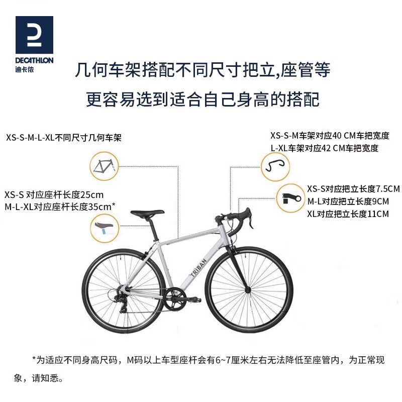 迪卡侬RC100公路自行车弯把铝合金轻便骑行赛车变速车酷冷银M-2711940价格:1799.90元!