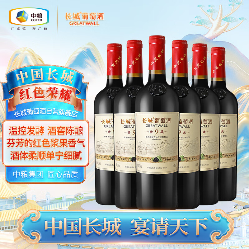 长城 特藏9 橡木桶解百纳干红葡萄酒 750ml*6瓶 整箱装价格:648.00元!
