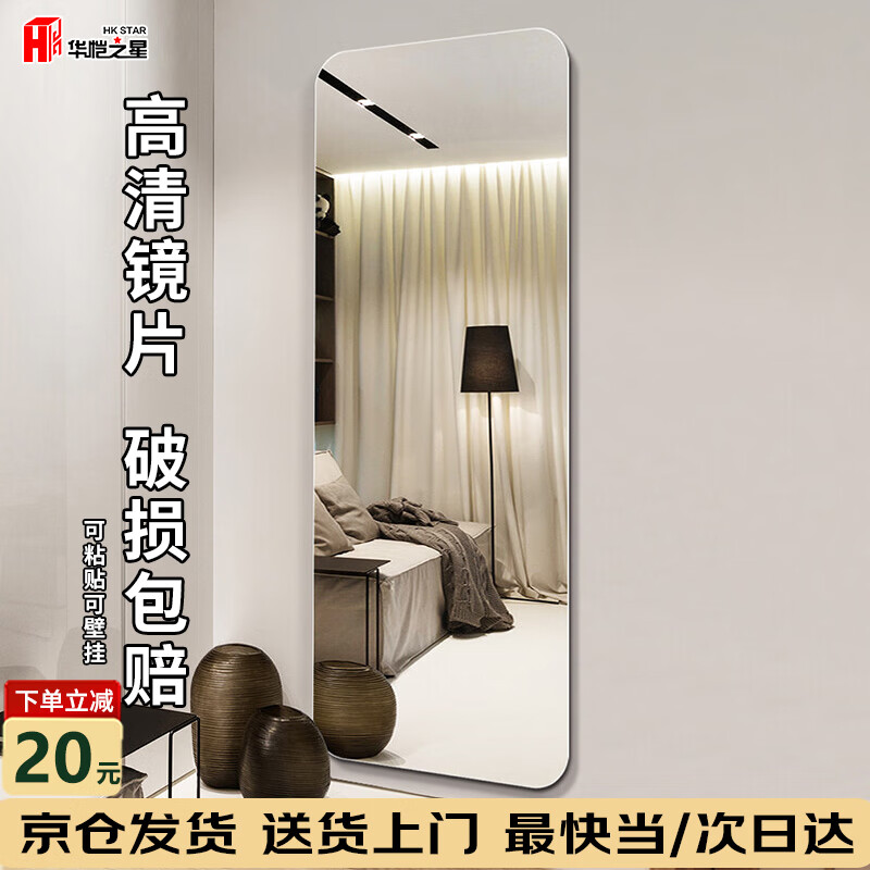 华恺之星 穿衣镜贴墙镜子全身镜家用试衣镜化妆壁挂镜高清超白 圆角150*50价格:108.30元!
