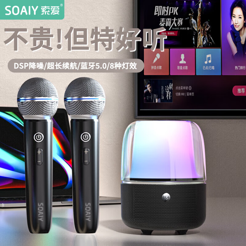 索爱(soaiy)sh77无线蓝牙音箱户外炫彩灯光家用桌面小音响迷你手机小钢炮收款便携式大音量车载低音炮双麦价格:199.00元!