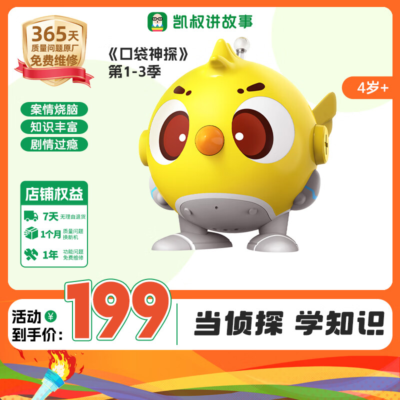 凯叔讲故事口袋神探1-3合集鸡飞飞早教机故事机玩具男女孩生日礼物价格:199.00元!