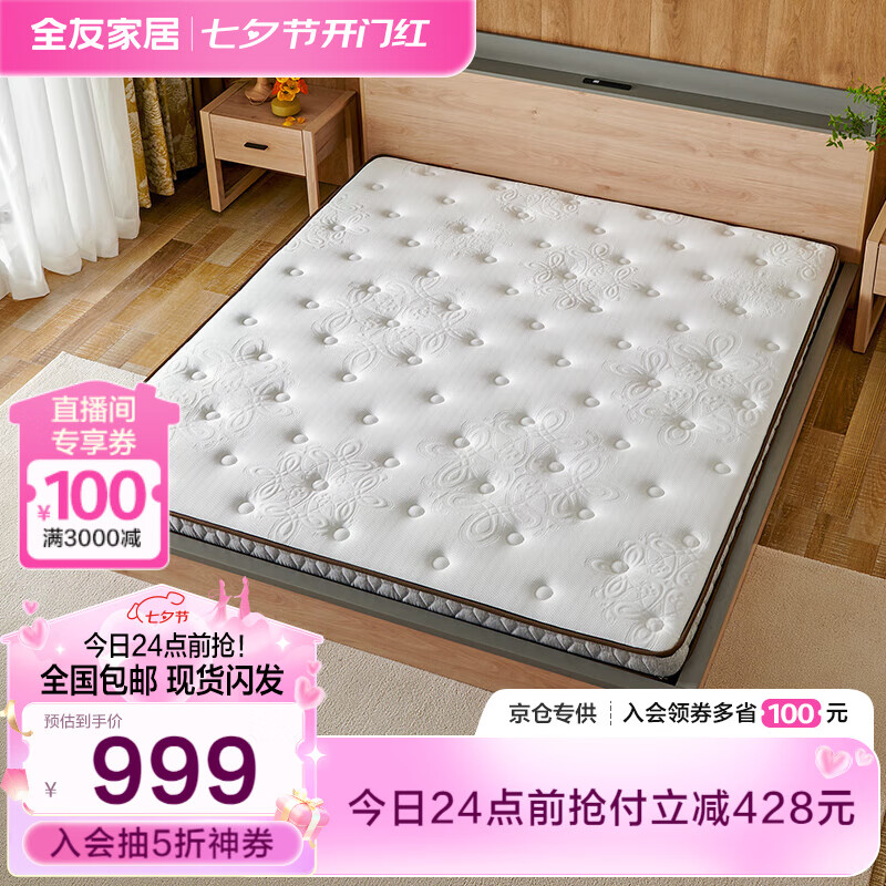 全友家居 薄款护脊椰棕床垫1.8米10cm厚加硬进口乳胶榻榻米床垫105115价格:1427.14元!