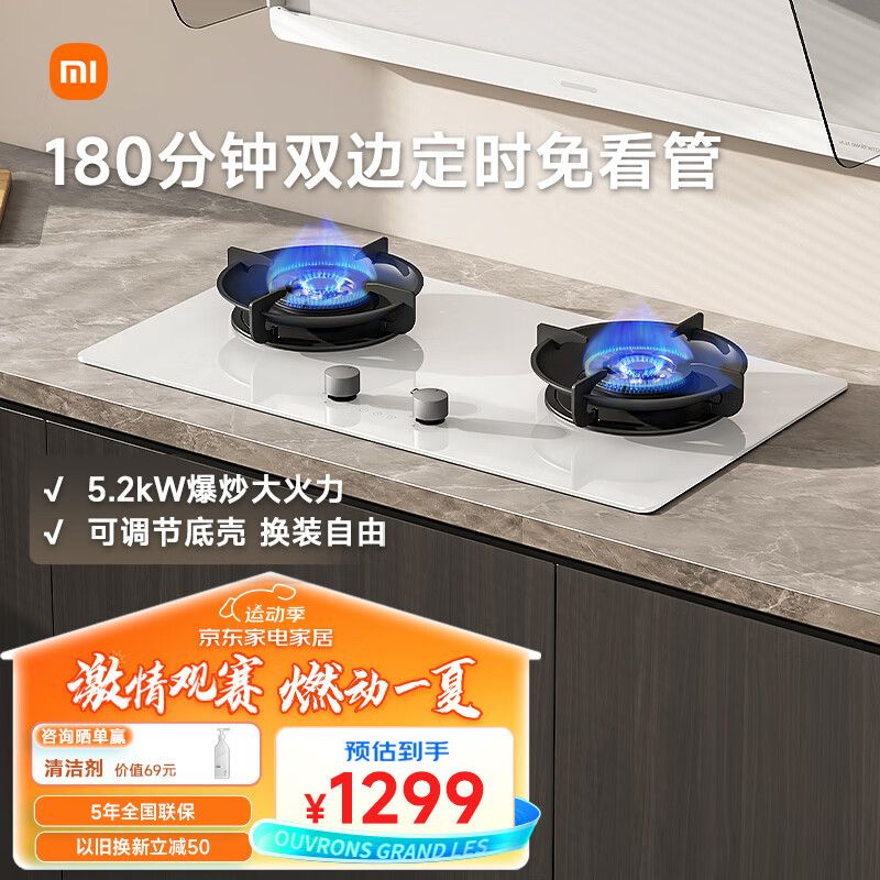 米家小米家用燃气灶天然气 嵌入式双灶台 5.2kW大火力猛火灶双边定时灶 可调节底盘白色灶具JZT-MJ04A价格:1299.00元!