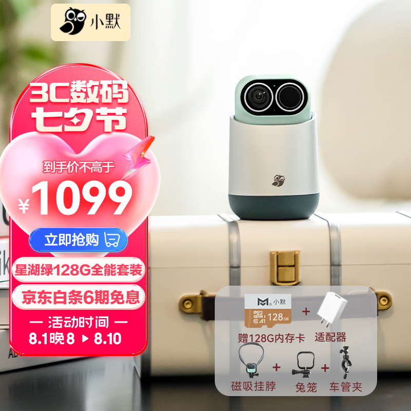 小默魔法相机vlog摄像机强力磁吸监控家用礼盒 骑行便携式运动相机 星湖绿128G全能套装价格:1149.00元!
