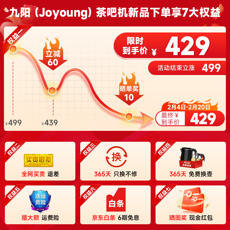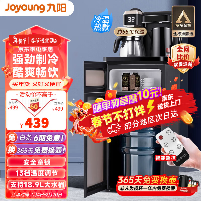 九阳(Joyoung) 茶吧机 家用多功能智遥控大屏显示立式下置式饮水机 双口出水24小时保温 【双壶独立出水】 冷热型价格:499.00元!
