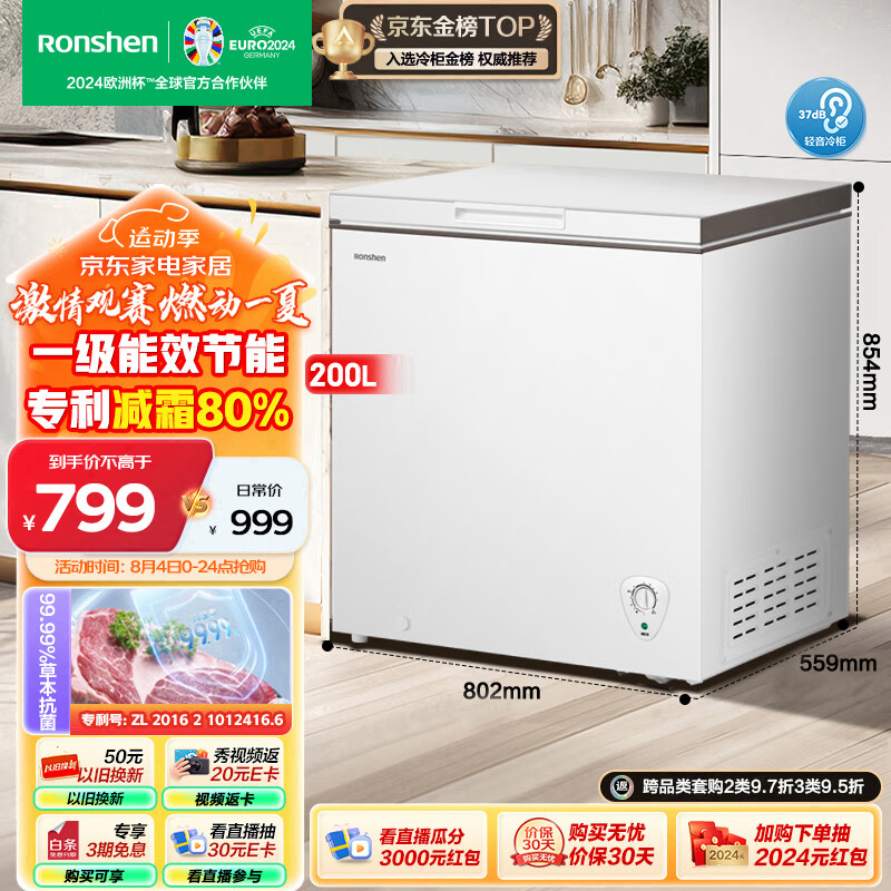 容声(Ronshen)200升冰柜减霜80%卧式家用商用囤货小冷柜冷藏冷冻转换一级能效母乳小冰箱BD/BC-200ZMSMB以旧换新价格:799.00元!