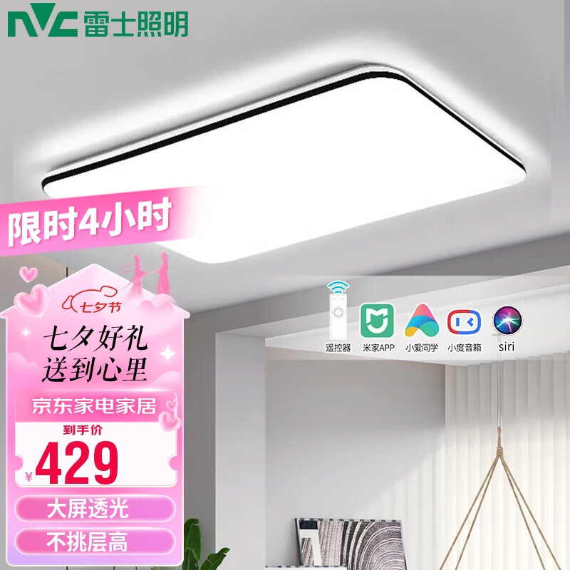 雷士照明(NVC)LED吸顶灯客厅大灯 现代简约超薄灯饰灯具 米家智能调光 120W价格:499.00元!