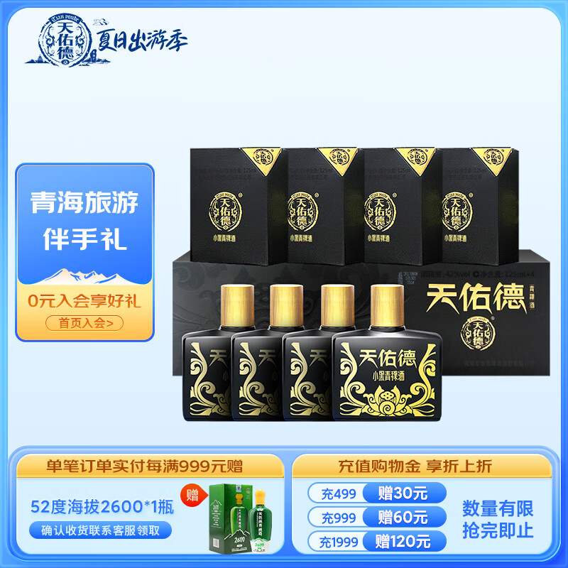 天佑德小黑系列清香型白酒42度125ml*4瓶单盒装【青海青稞酒】价格:98.00元!
