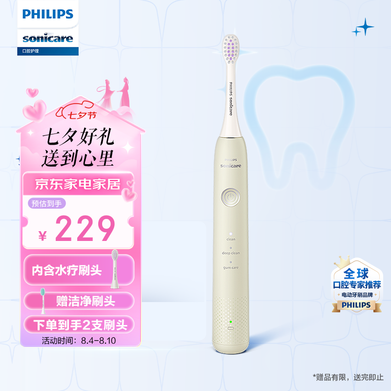 飞利浦(PHILIPS)电动牙刷S1 成人情侣款 七夕礼物送男/女礼物 3种模式 全新柔韧SPA刷头HX2411/03Yummy刷 绿色价格:239.00元!
