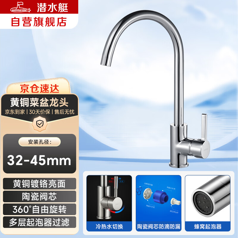 潜水艇(Submarine)L3012 全铜厨房菜盆龙头 水槽龙头 冷热水龙头价格:360.00元!