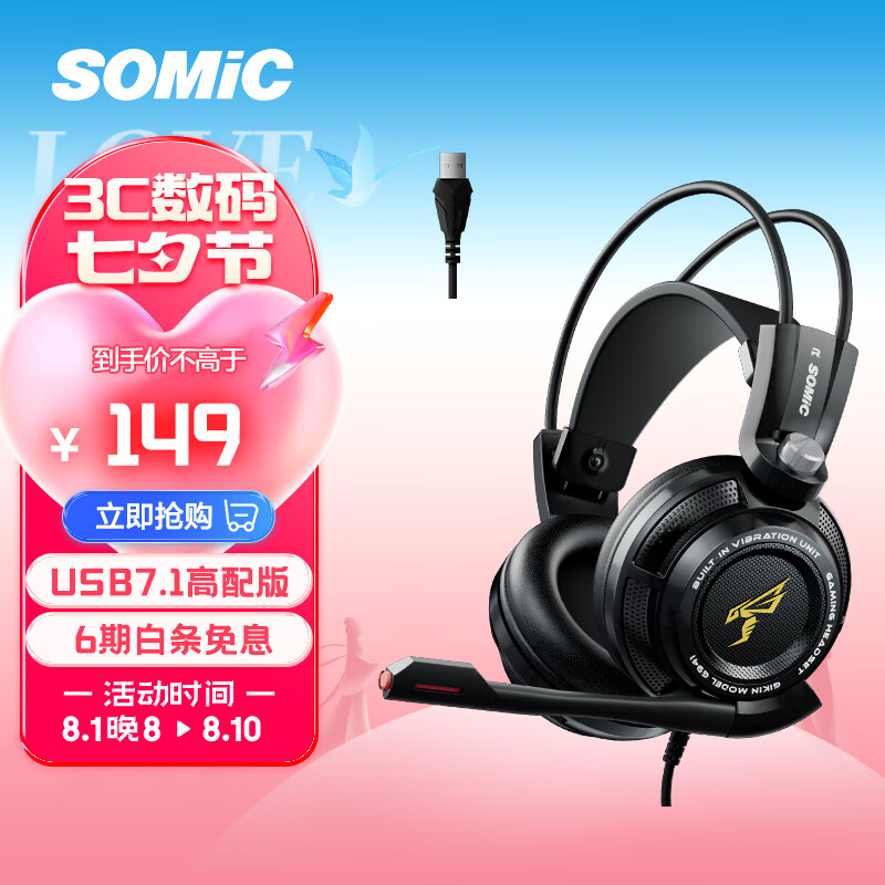 硕美科(SOMIC)G941头戴式游戏耳机 电竞耳麦 USB有线接口 电脑耳机 电竞有线耳机 7.1虚拟游戏环绕音效 听声辩位价格:169.00元!