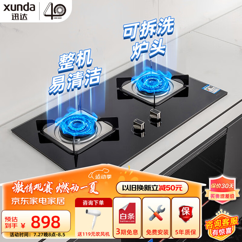 迅达(XUNDA)燃气灶液化气灶家用 煤气灶双灶具 嵌入式台式两用 4.6KW旋流猛火灶 可拆卸炉头 M1-液化气价格:1098.00元!