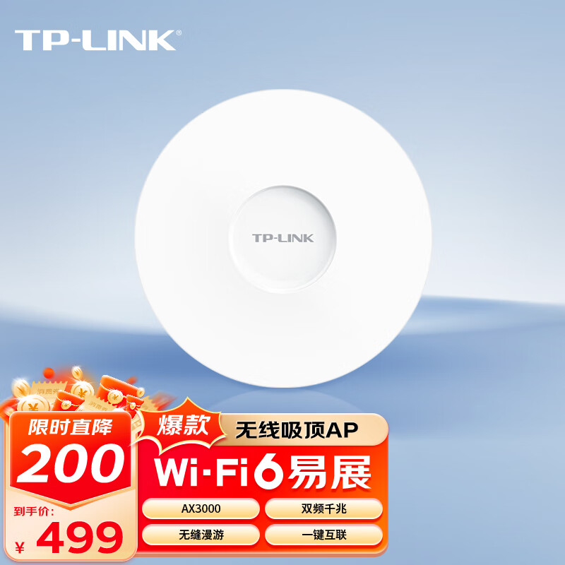 TP-linkWIFI6 吸顶AP AX3000双频千兆 别墅酒店商用WiFi全覆盖 大功率5G易展 TL-XAP3007GC-PoE/DC易展版价格:699.00元!