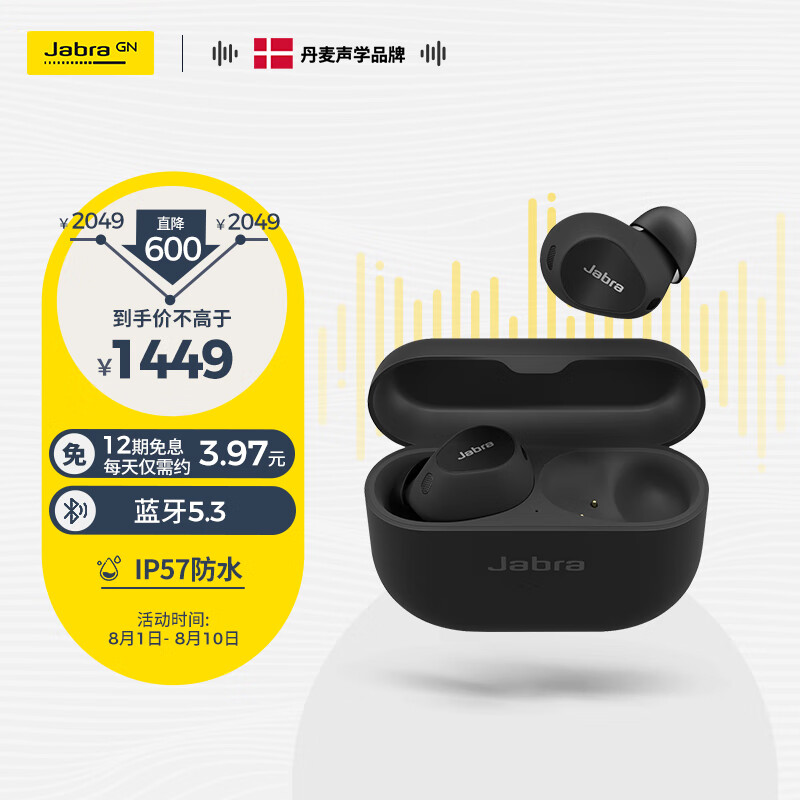 捷波朗(Jabra)Elite10 新一代E10主动降噪真无线蓝牙半开放入耳式耳机(85t升级版E10)自适应双馈主动降噪 亮黑色价格:1599.00元!