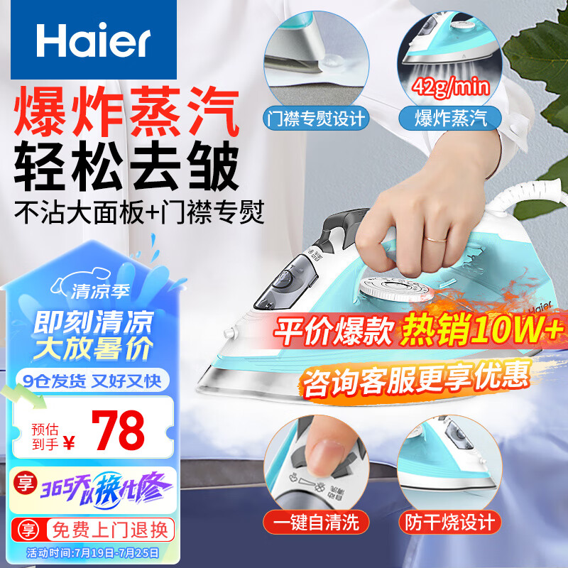 海尔(Haier)电熨斗自动清洗熨斗家用蒸汽挂烫机手持烫斗小型熨烫机干湿双烫 YD1618专销价格:78.00元!