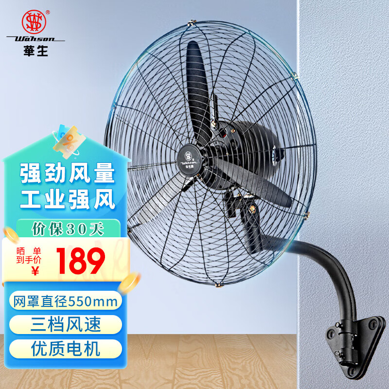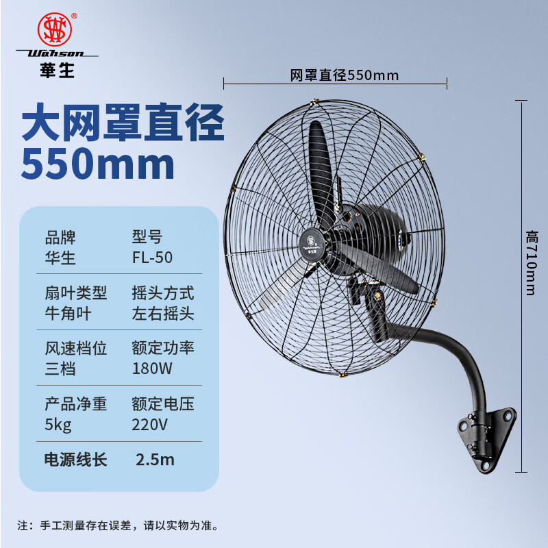 华生(Wahson)工业扇/电风扇/壁扇/大风量工厂车间工业风扇/商用风扇牛角扇 FL50-B(加强版)价格:199.00元!